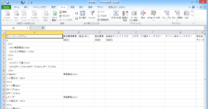 CSVの1行目は楽天市場の「店舗運営Navi」のマニュアルにある「項目名」を入力します。